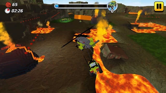 如火山,完成英雄挑战,赢得新的汽车部件和乐高砖块