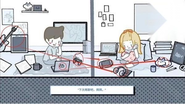 点击对话到这个界面后不要点最下面的选项,可以点击吉他—耳机、游戏手柄—游戏机、笔记本电脑—猫。