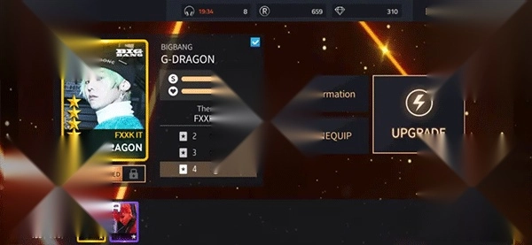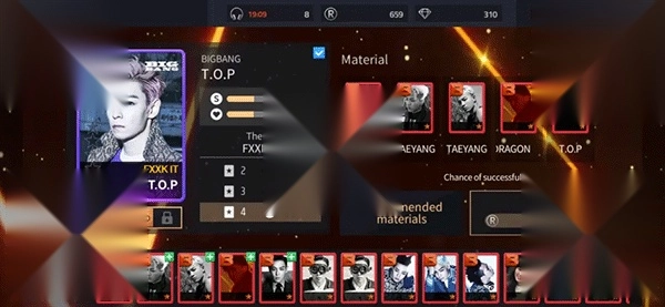 进阶(Upgrade):两张5星的同一组歌手的同一类型卡牌的卡牌,可进阶到更高等级的1星卡牌