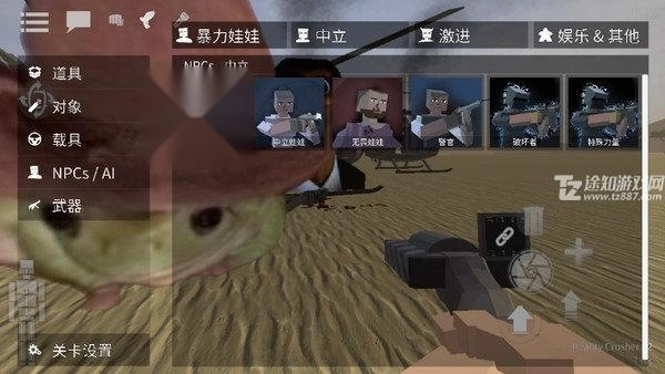 4、点击右侧的“手枪”按钮可切换至持枪状态,瞄准中心位置点击即可开枪,+号按钮可用于新增靶子角色。