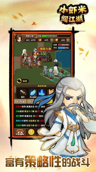 《小虾米闯江湖》是一款武侠题材的闯关竞技游戏,画面采用卡通复古风格,为你呈现一个全新的武侠世界,你可以在这里自由探索。选择心仪的战斗英雄,开启你的江湖闯荡之旅,学习各类武林绝学参与战斗,行劫富济贫之事,真切体验江湖世界的快意恩仇,快来加入挑战吧!
