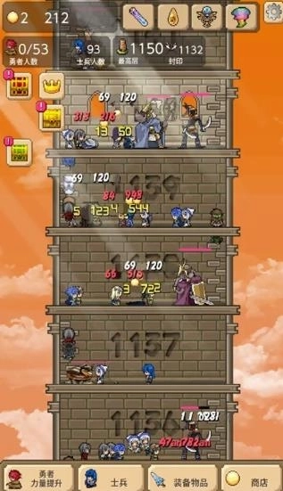 3、塔的每一层都驻守着不少兵力,您得和它们战斗,才能一层一层往上攀爬。