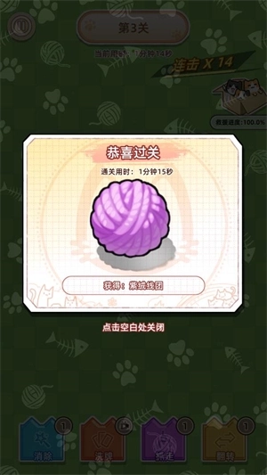3、当拯救所有猫猫后就可以通关,通关会解锁新的猫猫或者新的装饰。
