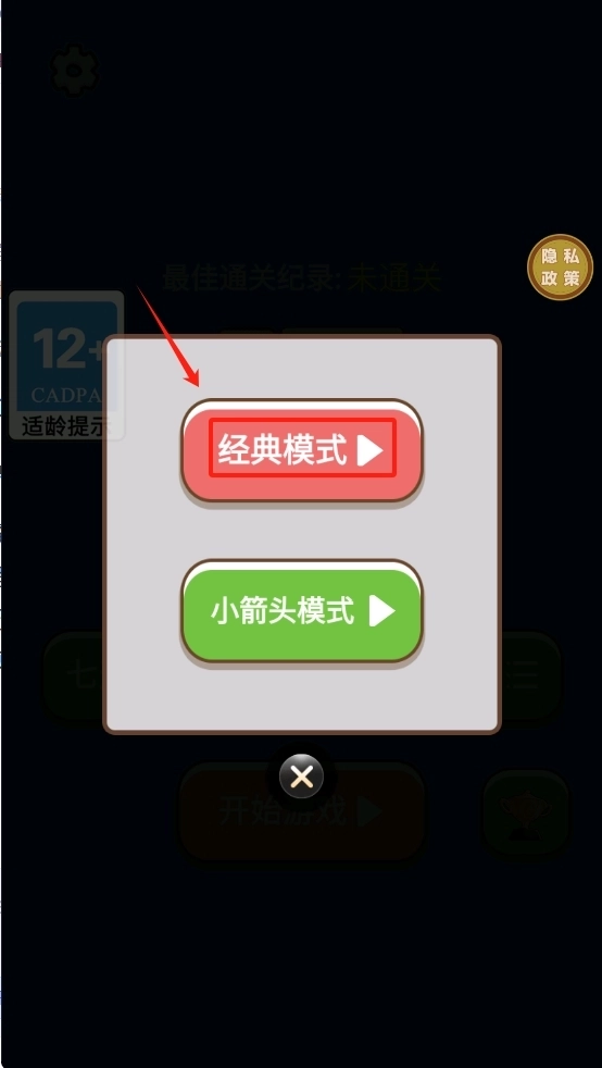 2、点击“经典模式”或“小箭头模式”,选择你喜欢的游戏模式。