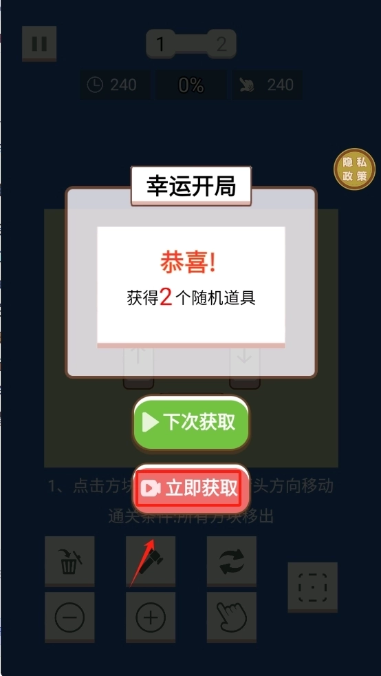 3、点击“立即获取”按钮,获取随机道具,增加游戏乐趣。