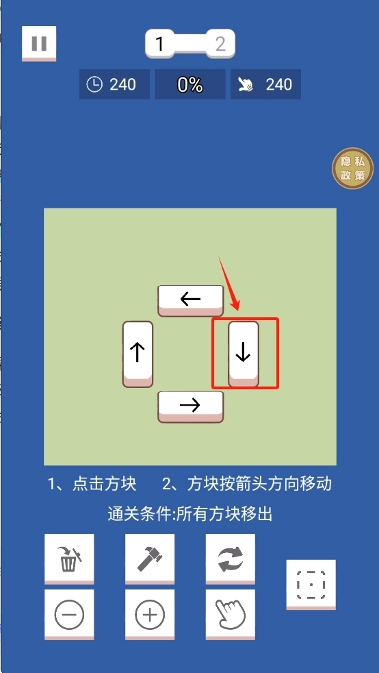 4、通过点击方块并按照箭头方向移动,完成关卡挑战。