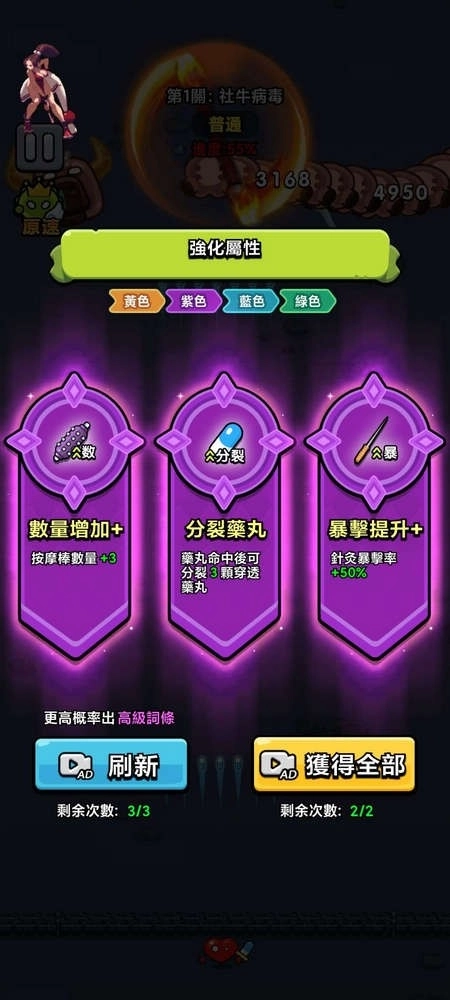 3.当玩家遭遇病毒或其他敌人时,能够挑选不同的技能来展开攻击与防御。
