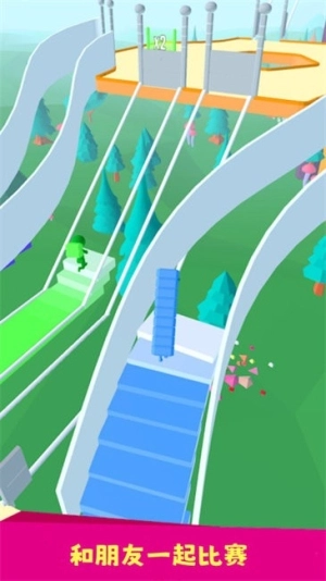 1、这是一款多人在线竞技游戏,玩家得在规定时间里搭建桥梁,朝着终点快速前进。