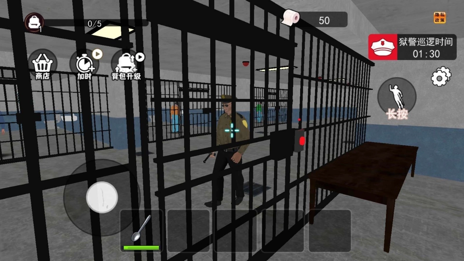 《监狱逃脱挖下去》是一款围绕监狱越狱主题展开的模拟游戏,玩家将化身囚犯,借助勺子这类简易工具在地牢中挖掘通道,还得在狱警巡逻的间隙把挖掘痕迹掩盖好,一步步推进自己的越狱计划。游戏里融合了策略与养成的元素,玩家可以通过升级背包来增加工具的携带数量,同时提升挖掘的效率,另外还要应对监狱环境中存在的各种未知风险。游戏采用“一镜到底”的视角设计,玩家需要全程留意各种细节,比如用毯子遮盖地板上的裂痕、把工具藏起来等,每一次挖掘都有可能触发新的线索或者遇到突发情况,整个过程充满了未知感和挑战性。