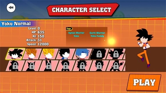 2、然后左右滑动可以选择不同的火柴人英雄。