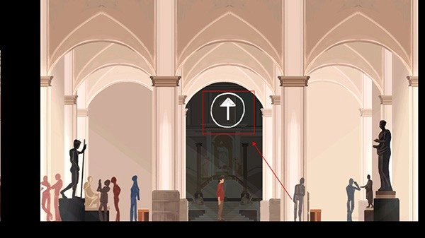 6、最后向右行进,点击向上按钮进入,即可选择查看各类展品。