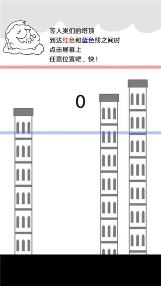 破坏巴别塔是一款以神话为背景的休闲魔性闯关。游戏的画面由极简的线条构成,画风清晰简单,魔性的音乐搭配的恰到好处,让玩家能够尽情的放松自己的身心。在游戏中,玩家成为了雷神,要摧毁不断上涨的巴别塔,让巴别塔一直保持在蓝线以上红线以下,这样摧毁巴别塔,玩家能够得到奖励。游戏的玩法十分魔性,玩家需要不断的点击屏幕,需要在塔接近红线时摧毁才能得到更多的积分。