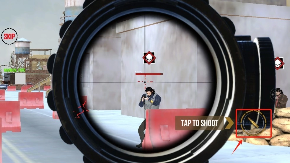 3、完成瞄准后,点击射击按钮,精准消灭敌人,达成任务目标。