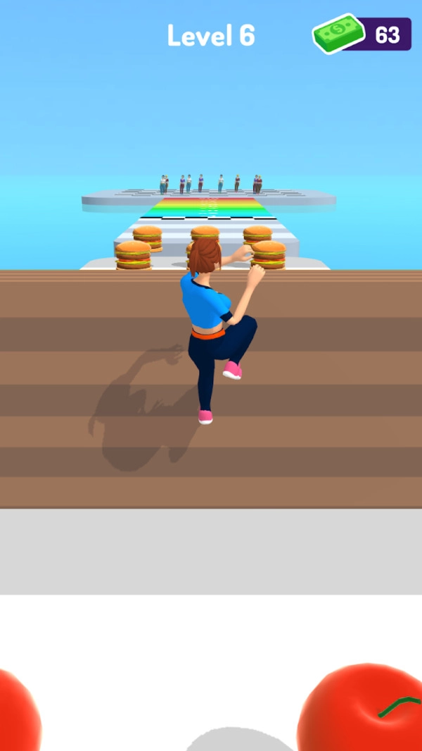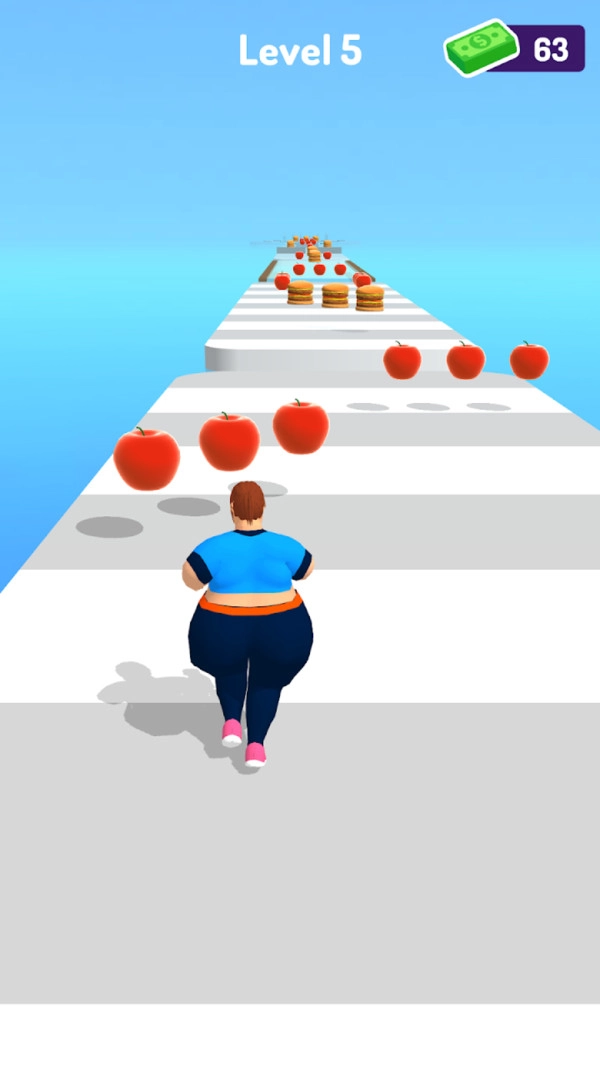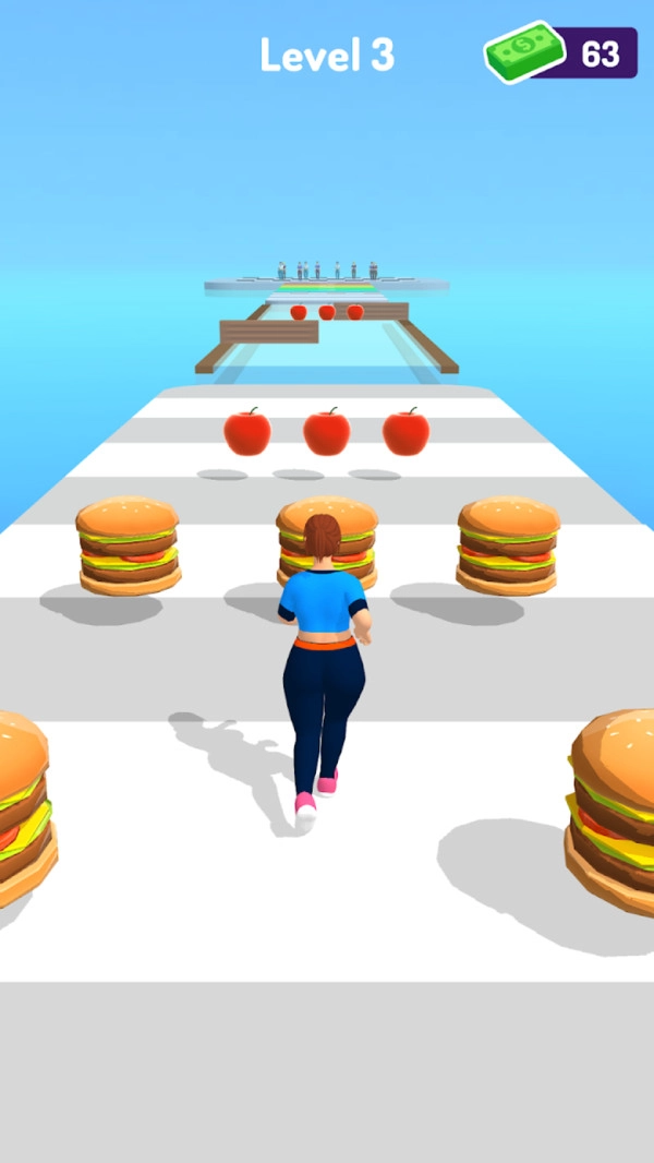 开始一场趣味减肥挑战,在赛道上不断的来吃到苹果帮助你的角色进行减肥,小心美味的汉堡,会影响你的减肥计划,身材越苗条闯关的速度越快,你需要更加的灵敏的前行,吃到更多的苹果来保持身材的苗条,完成任务赢得超