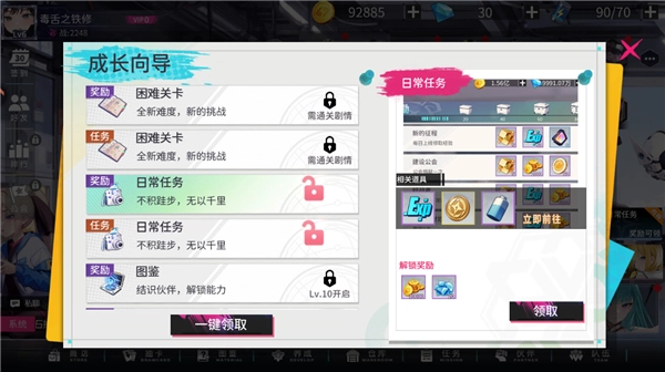 每日任务和每周任务能提供稳定的经验、钻石以及基础资源,资源副本建议每天都刷,这样可以保障角色成长的基础。