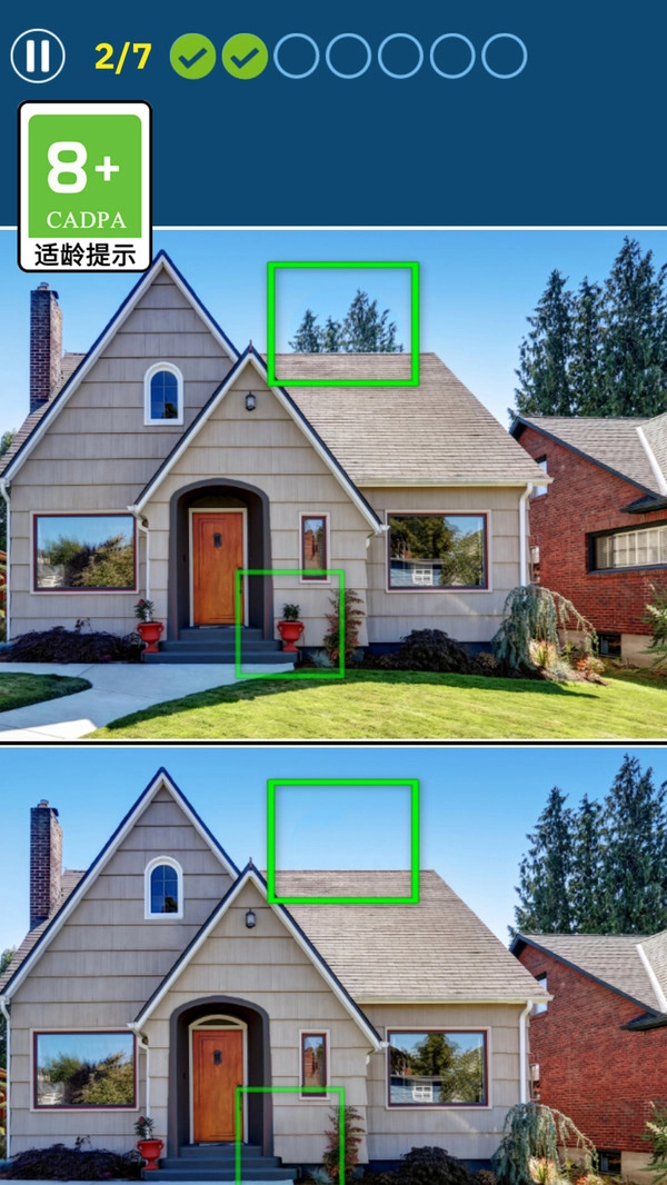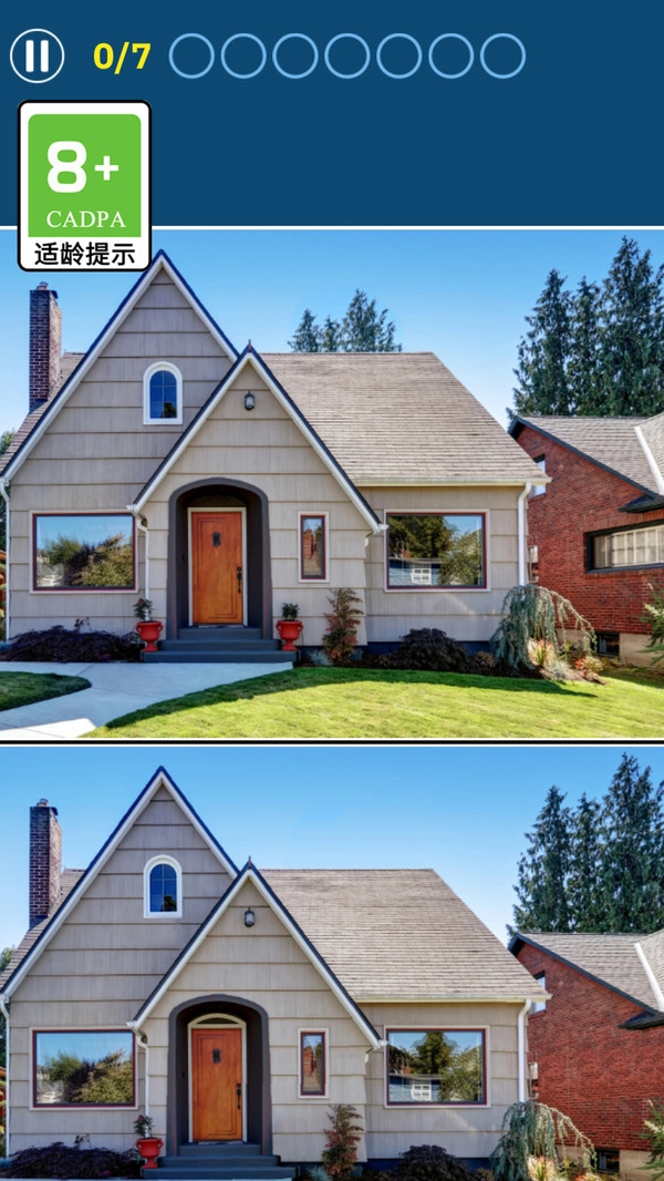 2、用手指点击标记差异之处,集齐七个就能通关进入下一关。