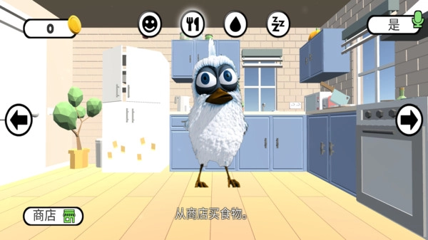 2、用金币购买食物和奇特物品,以此丰富拉里的生活,解锁新的互动方式。