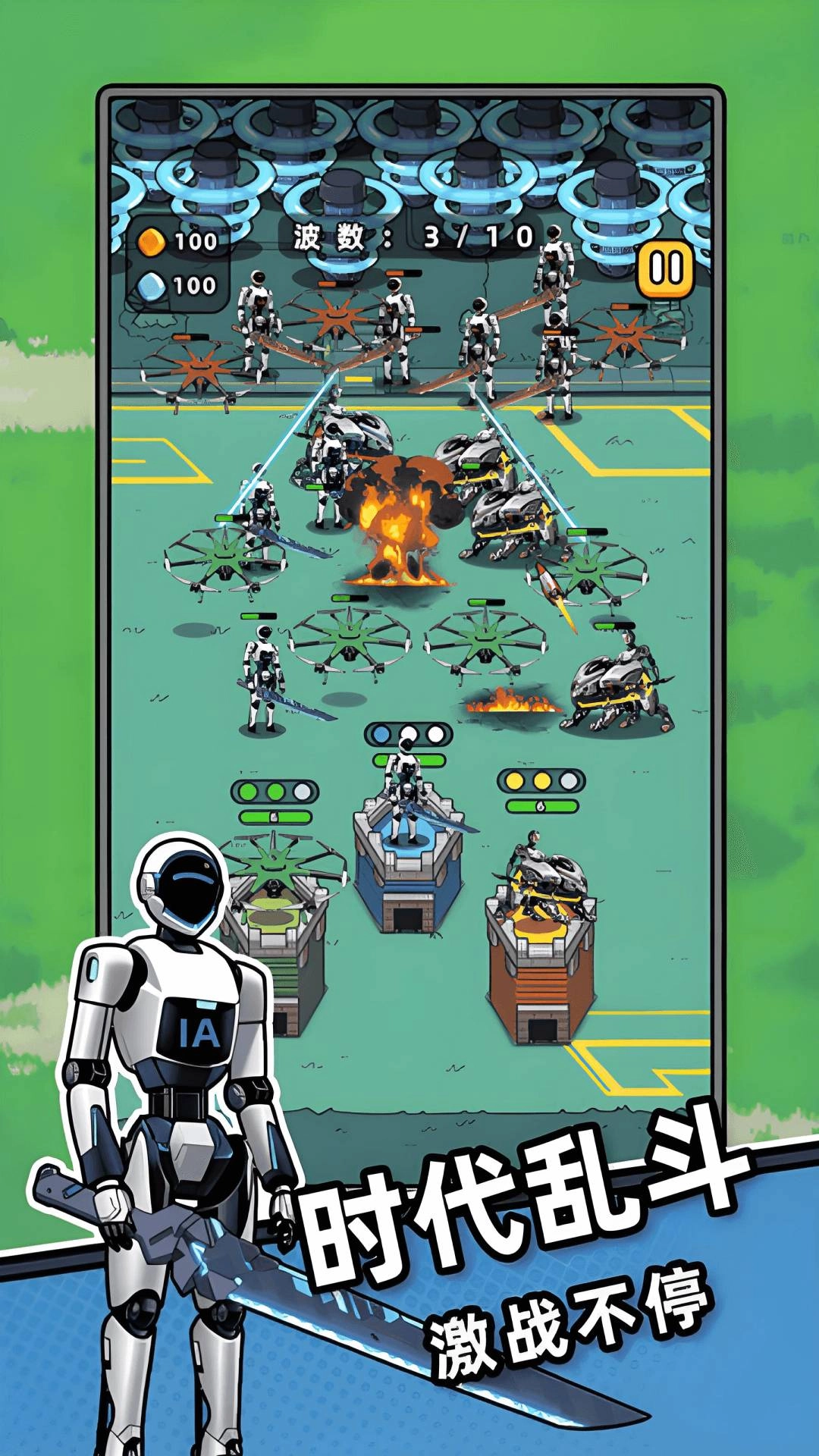1、在专属区域内能够自由布置士兵,相同类型的士兵可通过合成实现升级,从而快速增强自身的防守能力。