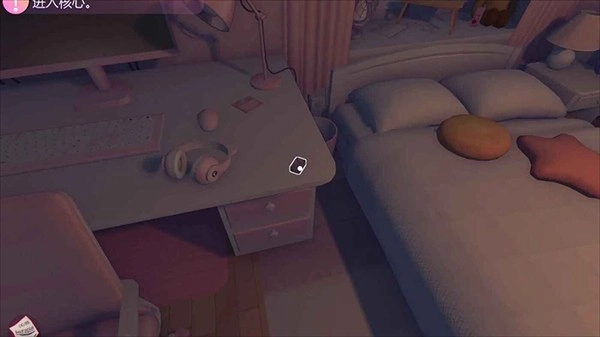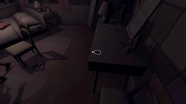 3、游戏采用第一人称3D视角,主角在卧室醒来后,第一步要做的就是拾取桌面上的手机。