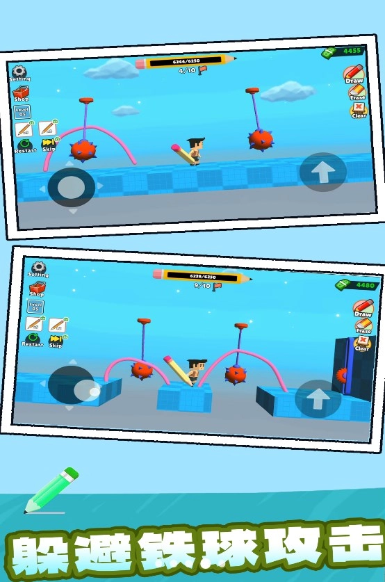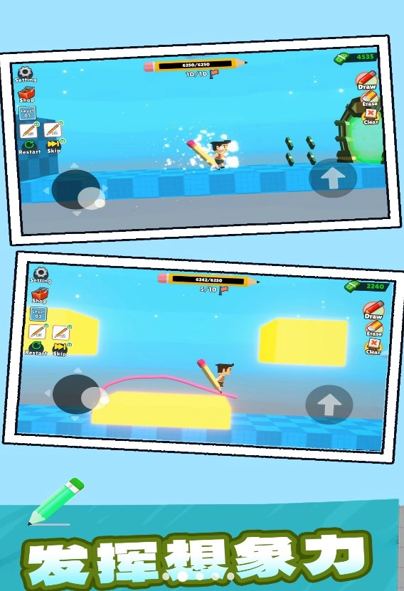 1.通过绘制线条的方式,引导角色完成奔跑、跳跃、躲避障碍等一系列动作;