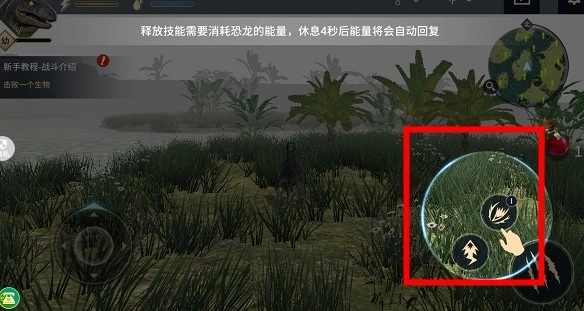 左侧的虚拟摇杆用来操控恐龙的移动方向,右侧区域里,靠下方的是攻击按钮,而在攻击按钮的左上方位置,则设置着技能按钮。