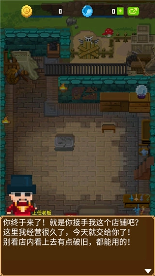 1、打开《锻冶屋英雄谭》,和前任老板交谈,知晓店铺的基本状况。