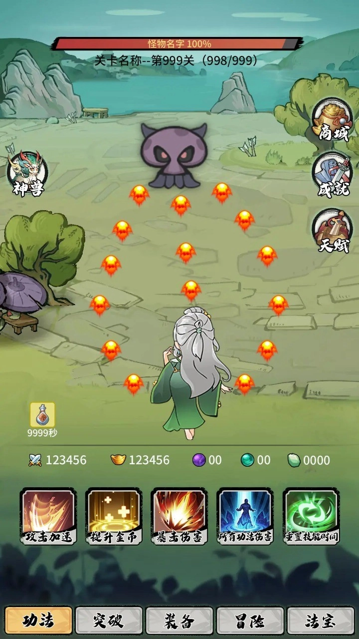 2. 挂机养成:玩家进入游戏后,能够借助挂机模式自动开展战斗与升级,持续增强自身的修为和实力。