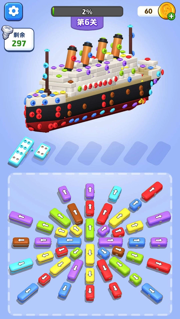 3.拖动并匹配相同颜色的螺丝,顺着箭头指示的方向完成拆装任务,就能赢取成就奖励和更多精彩体验。