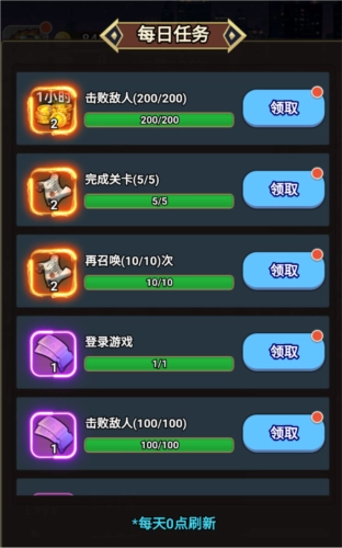 (2)日常任务刷新时间为每日凌晨0:00