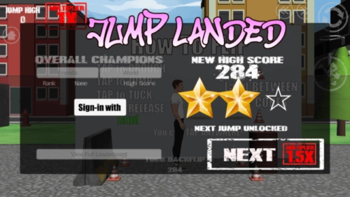 4、完成挑战:当你成功做出翻转动作且达到相应高度后,点击界面右上角的旗帜图标,即可结束当前关卡的挑战。