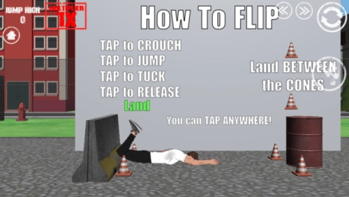 3、角色控制:游戏时,点击屏幕中央的圆形按钮,即可操控角色完成翻转动作。