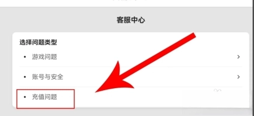第一步,打开香肠派对游戏客服中心下方点击“充值问题”。