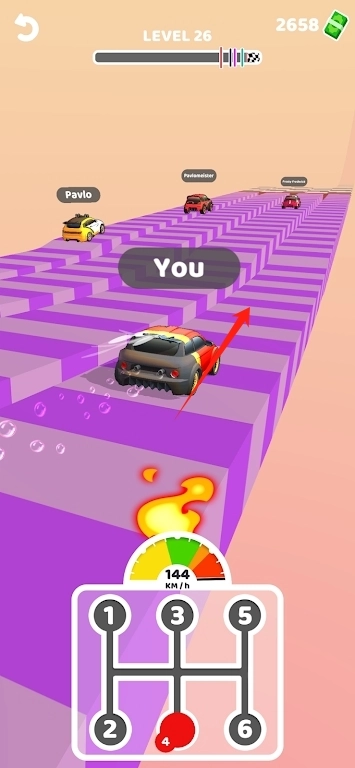 1、点击换挡,借助连续完成高难度超车来触发“超车大师”状态,可通过暂停功能调整策略并查看提示。