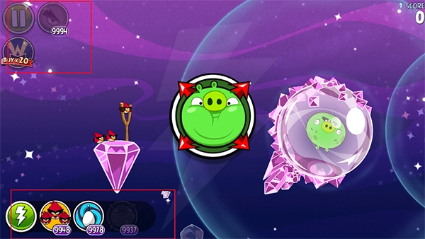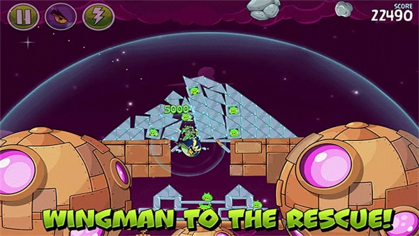 太空穿梭鸟(原来那只黄色的三角形小鸟)有着特别厉害的天赋——当它被发射到半路上时,只要轻轻点一下屏幕,就会发起直线冲刺攻击!它像导弹一样,以惊人的速度冲向绿猪,威力特别大!不过,加速的时机特别难把握,要是没掌握好,很可能会飞离目标,没法精准打击。但一旦摸透了它的用法,这只愤怒的小鸟就会真正“愤怒”起来,给那些木质的猪堡造成巨大的破坏。