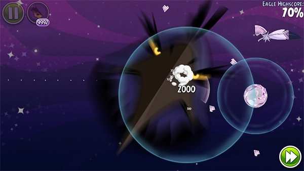 太空分身鸟(原绿色小小鸟)体型远小于其他鸟类,可别因此轻视它——它掌握着奇妙的克隆能力!发射后只需轻触屏幕,小鸟便会“噗”地化作三只,攻击范围直接翻倍!务必把控好克隆时机,在最精准的时刻触发,就能收获绝佳的攻击成效。不过它的攻击力稍弱,因此仅适用于对付玻璃材质的目标。