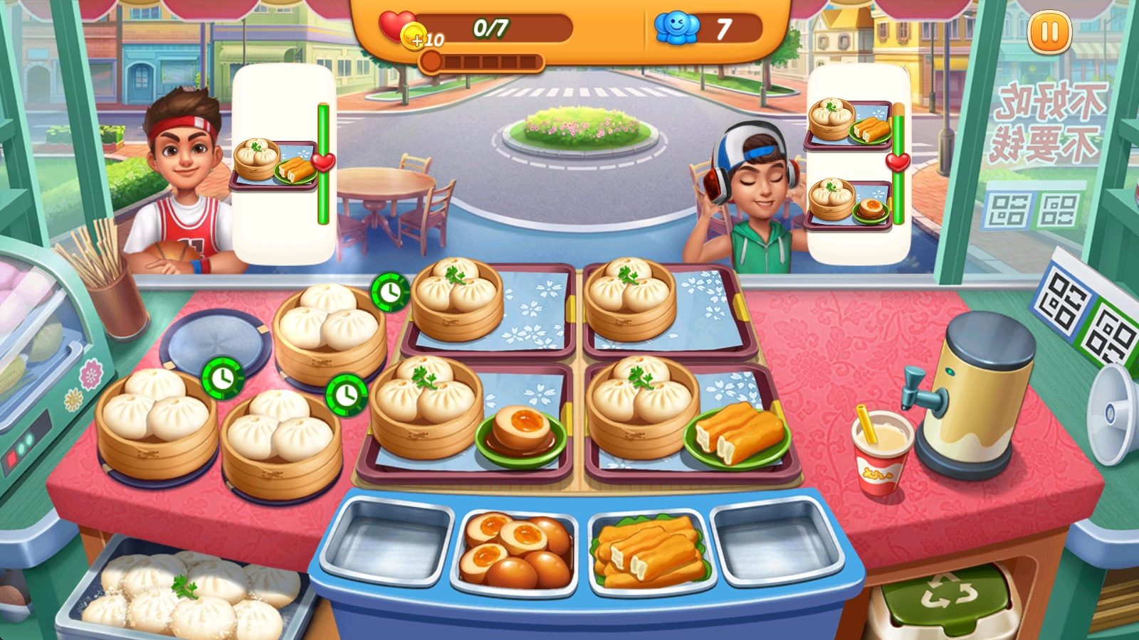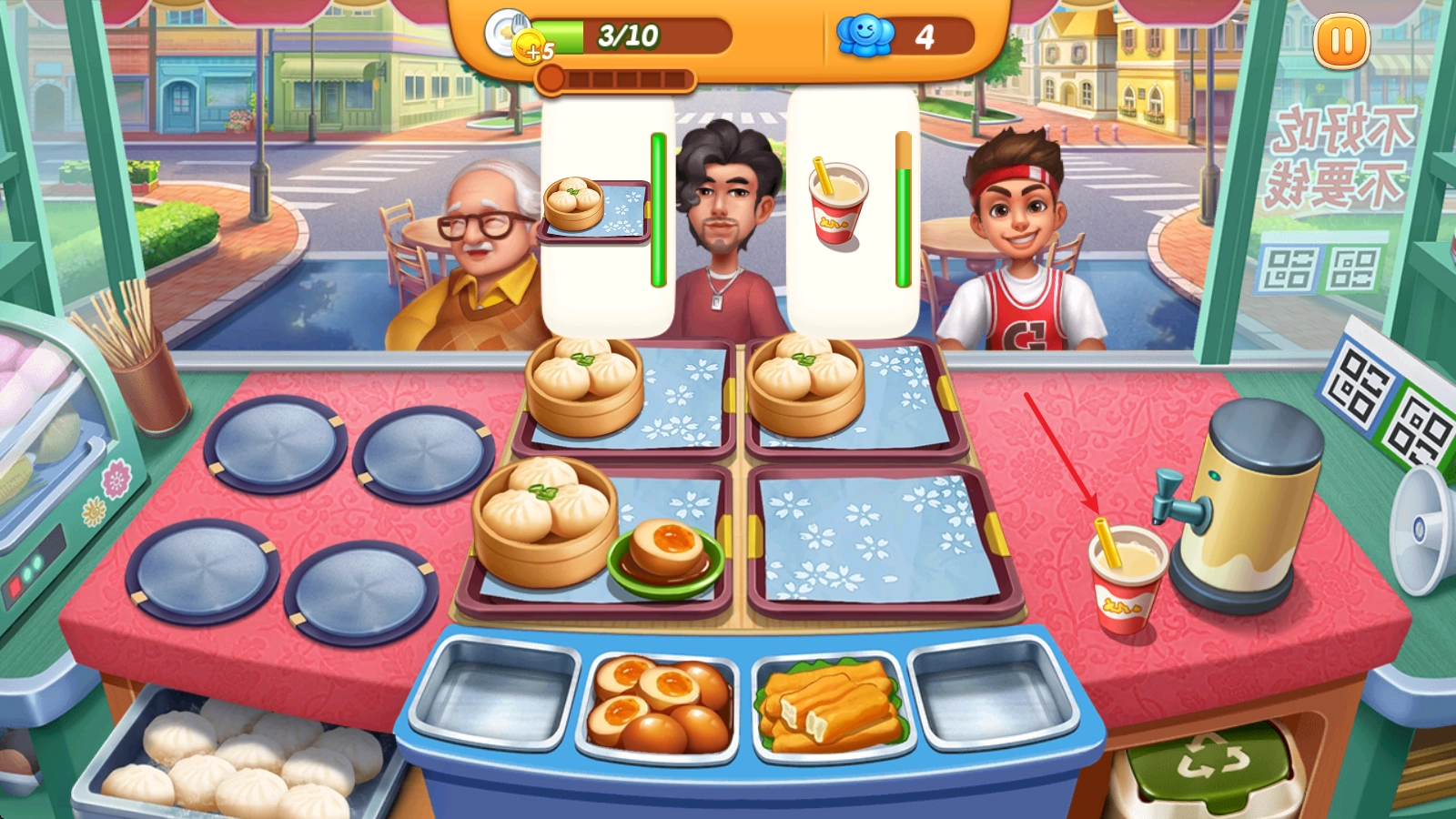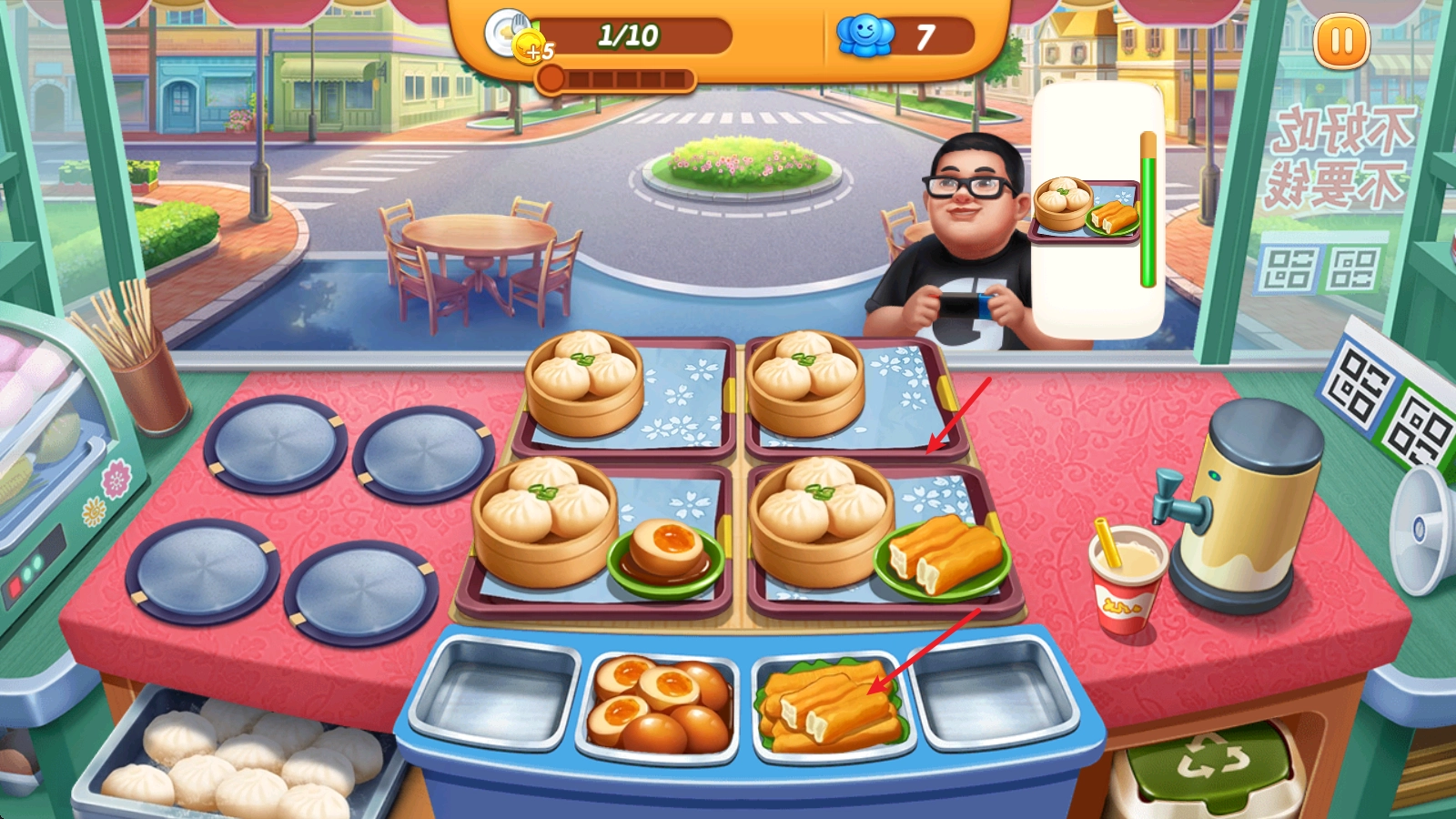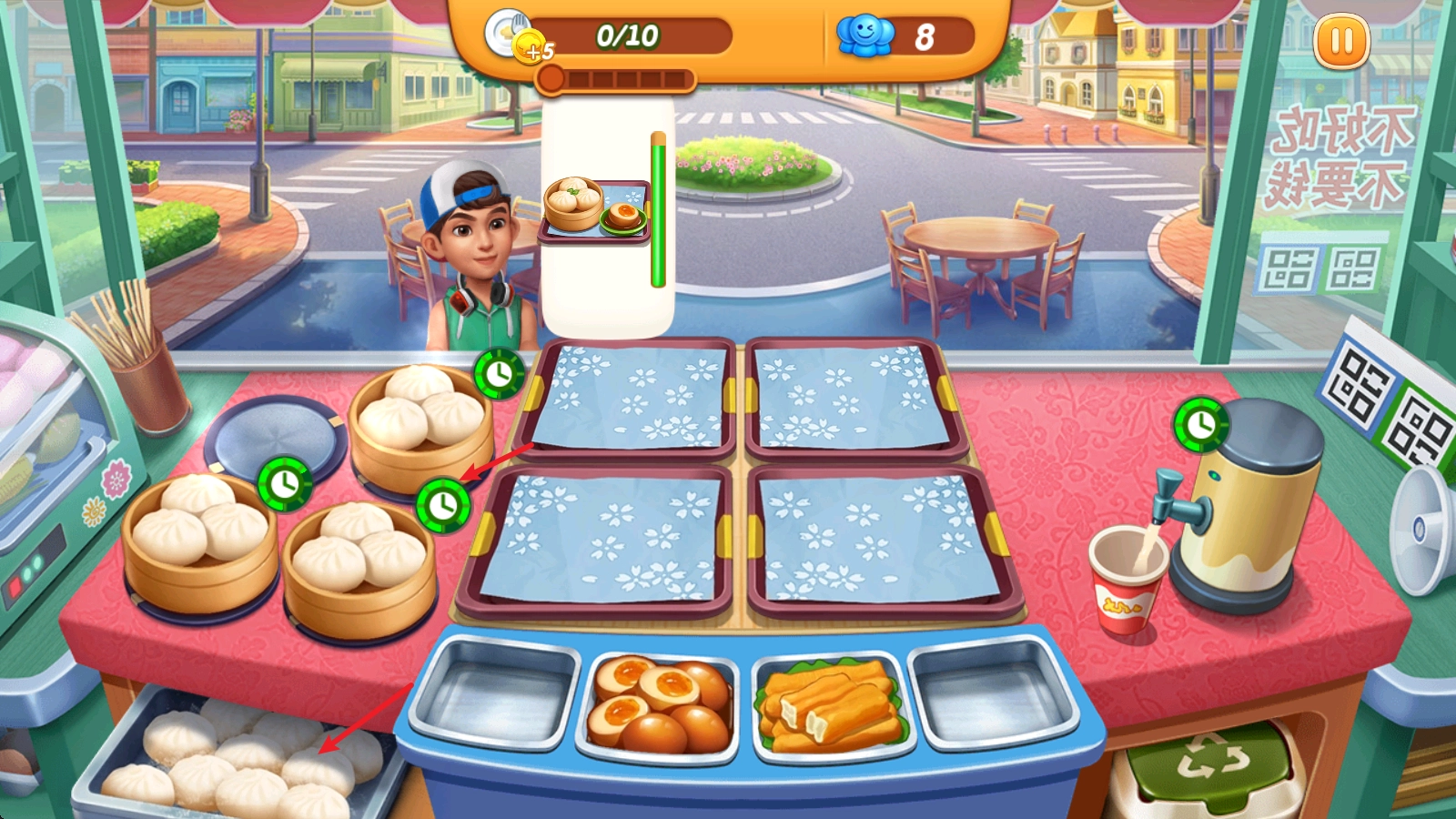 2、随后便会进入正式烹饪环节,初始店铺类型设定为早餐店,点击小笼包图标就能启动制作流程。