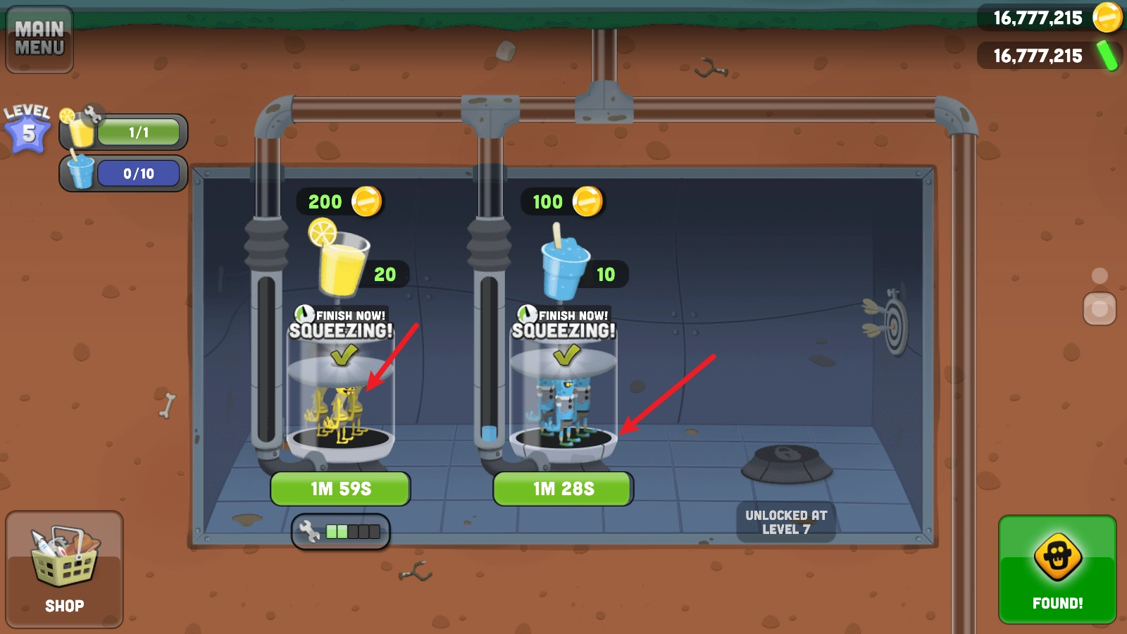 3、除了捕捉僵尸之外,你还得对自己的榨汁机工厂进行升级,让榨汁机的制作效率变得更高,从而生产出更多的果汁!