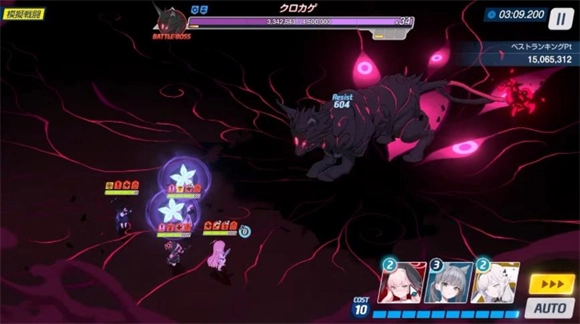 1、该boss的战斗地形为市街地战,攻击类型方面,EX难度及以下为一般类型,INS难度及以上则是神秘类型。装甲类型是弹力装甲,特性为对振动攻击弱耐(WEAK)、对爆发攻击抗性(RESIST)。总力战的完整流程为:从阶段1开启,boss受到特定伤害量后触发锁血机制,随后进入阶段2;在阶段2中boss再次受到特定伤害量后锁血,便会返回阶段1,如此循环直至战斗结束。