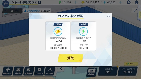 2、咖啡厅,通过咖啡厅的收入能够获取体力,体力上限为670点(在开启24图之后)。