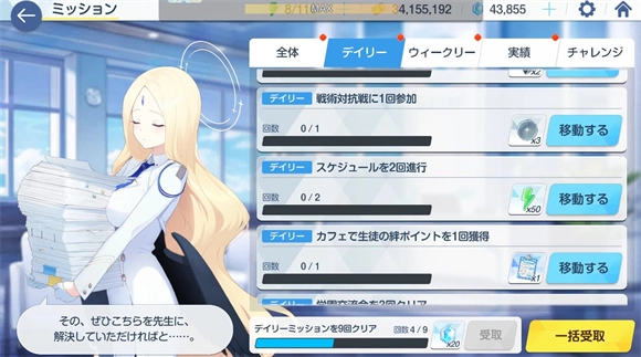 3. 每日任务总计提供150体力,具体由三部分构成:每日登录可获得50体力,晚间6点之后登录能获得50体力,完成日程表任务也可获得50体力。