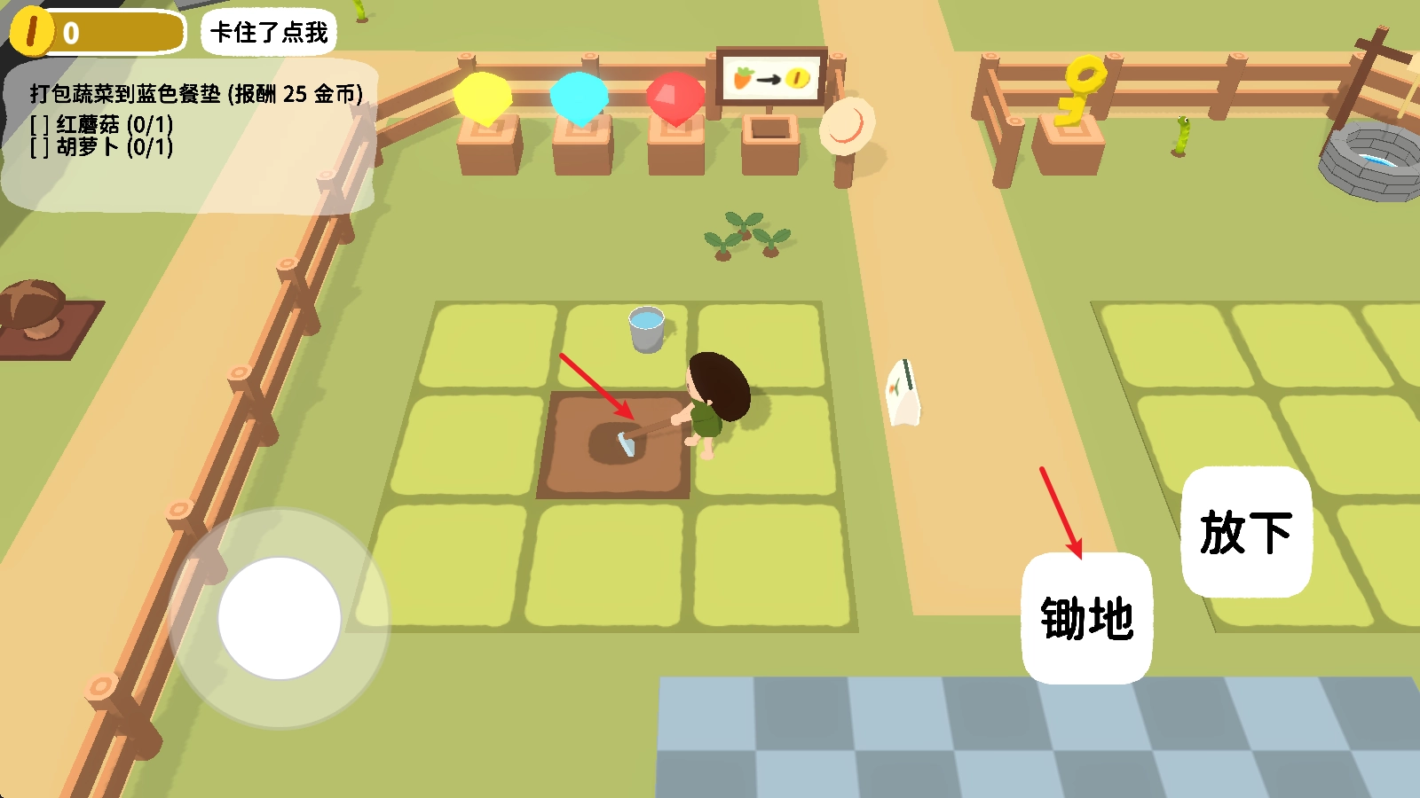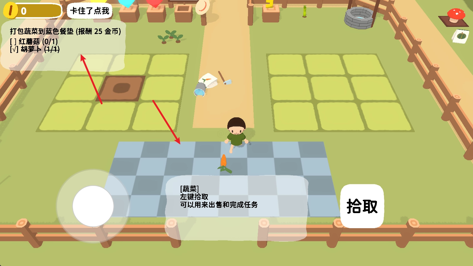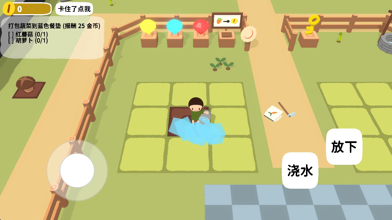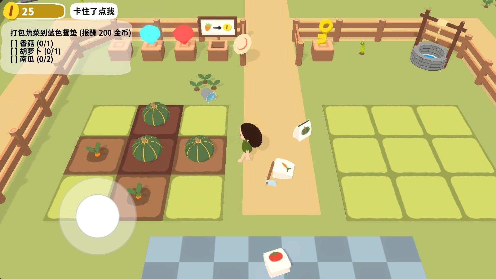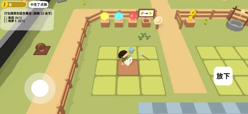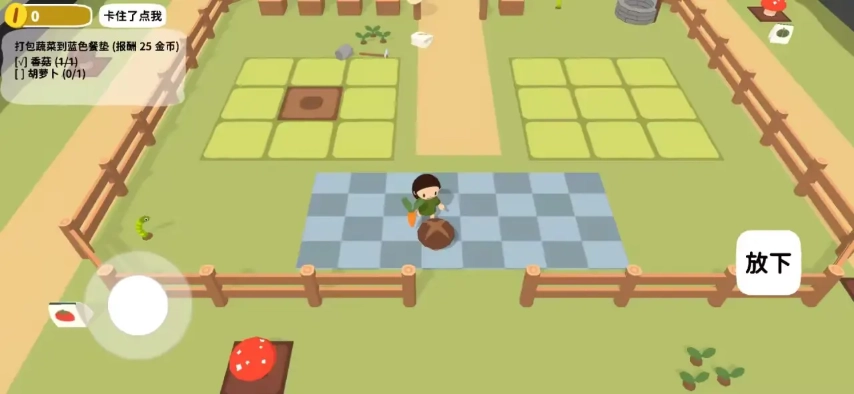 7、我们能够依据左上角任务的要求,把对应的作物放置到蓝色垫子里面,这样就能得到奖励了。