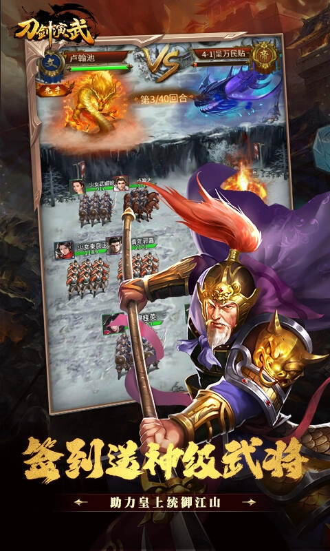 《刀剑演武》是一款热血策略卡牌游戏,游戏采用了精美的美术设计,在剧情和打击动画方面都进行了优化。玩家可以在这里开启一段传奇之旅,确保天命的传承,一步步登基为帝。在游戏中,玩家将手握至高无上的皇权,惩戒不忠的谋反之人,开创全新的太平盛世。同时,还能结识上百位不同的历史名将,巧妙运用武将之间的羁绊与技能。