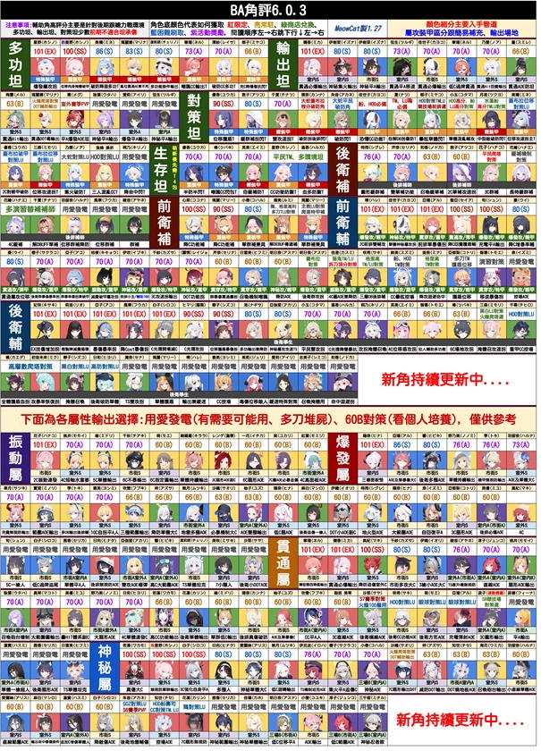 目前BA日服环境下的角色推荐,主要结合了个人主观看法与参考大众意见收集的内容
