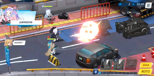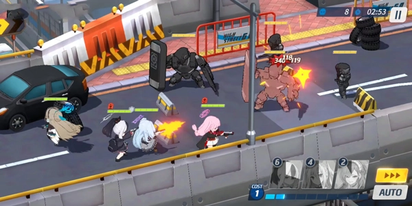 10、进入游戏后的界面如图所示,玩家既能手动操控角色发起攻击,也可以点击右下角的AUTO按钮开启自动作战模式,还能使用加速功能提升战斗进程;