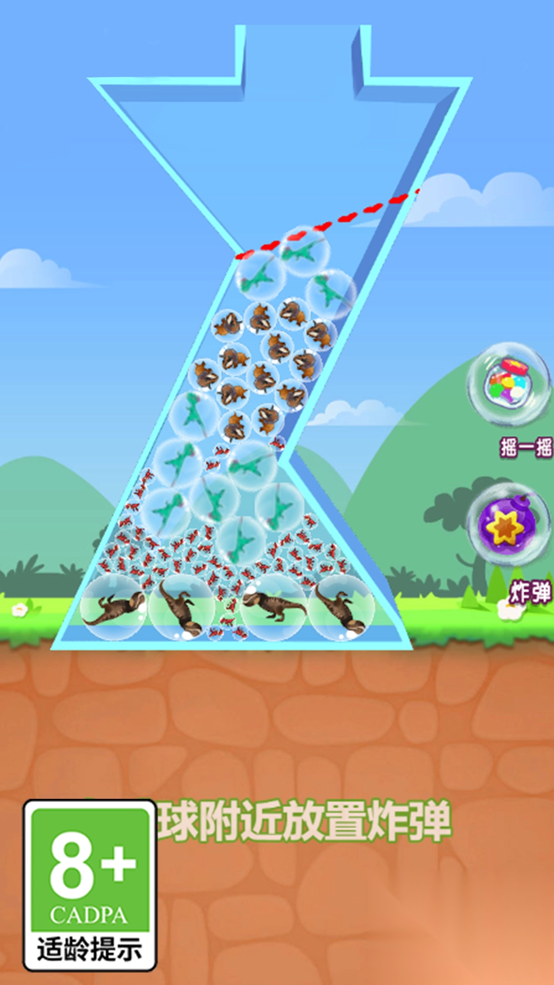 1、玩家需要策略性地挑选吞噬对象,迅速避开大型恐龙的攻击,搜寻更多可吞噬的目标,以快速进化至最终阶段。