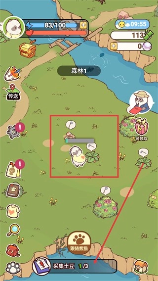 2、进入【森林1】后,可通过点击采集点获取【土豆】,进度会随操作实时更新显示。