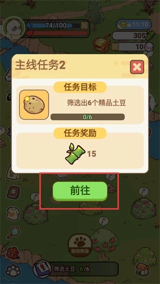 4、领取奖励后开启【主线任务2】,目标为筛选6个【精品土豆】,点击【前往】进入对应场景。