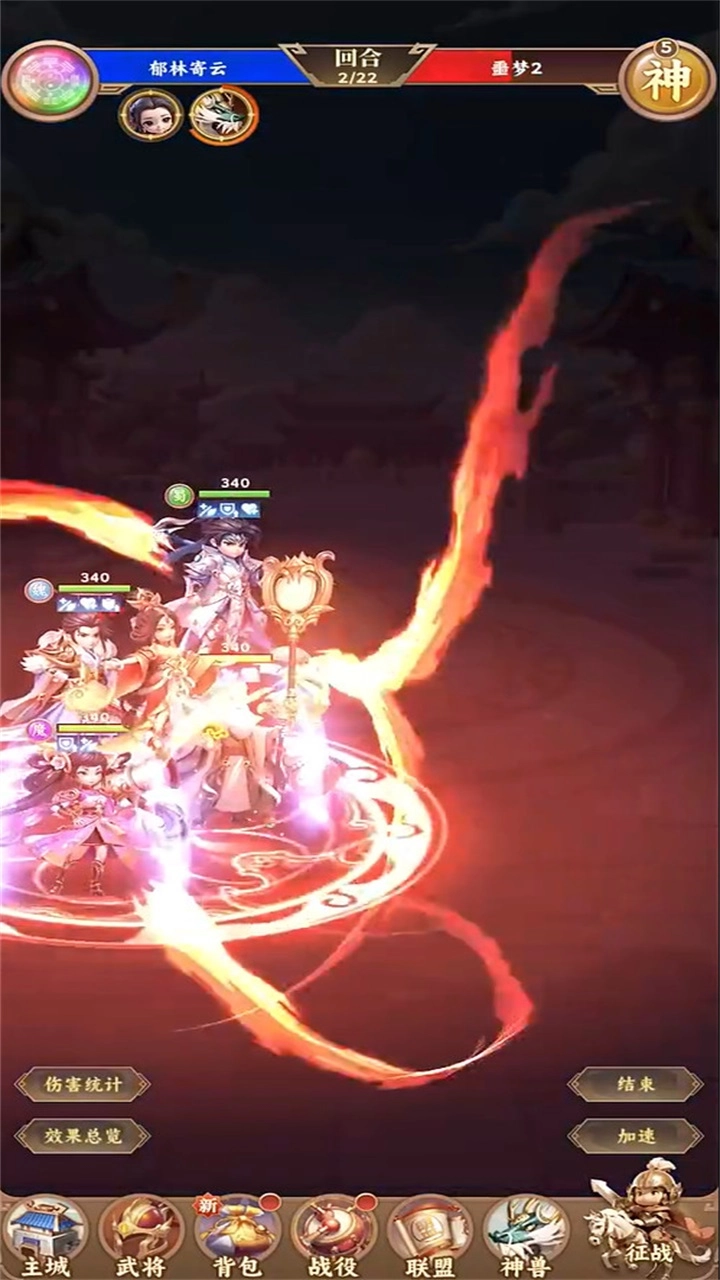4、神兽激活后,会对全体武将施加属性加成效果,并且不同的神兽各自具备独特的神兽技能。