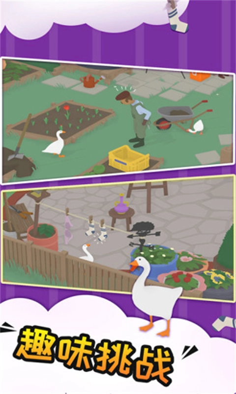 这是一款荒诞风格的闹剧游戏,玩家在游戏里操控一只鹅去捉弄路人,以此收获满满的欢乐。