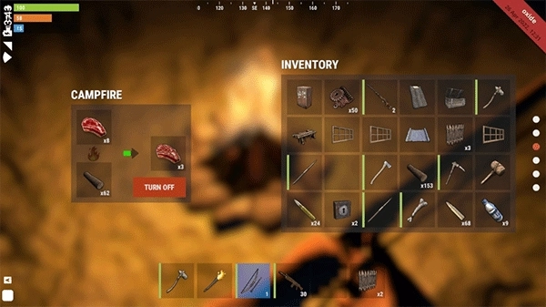 7、因为每台服务器的地图都是随机生成的,所以建议先对周边环境进行探索,留意大铁球、工厂、核电厂这类物资刷新点;要是发现了辐射区,就用石头收集100单位木材和30单位布料,这样就能制作出可以保存进度的睡袋了。